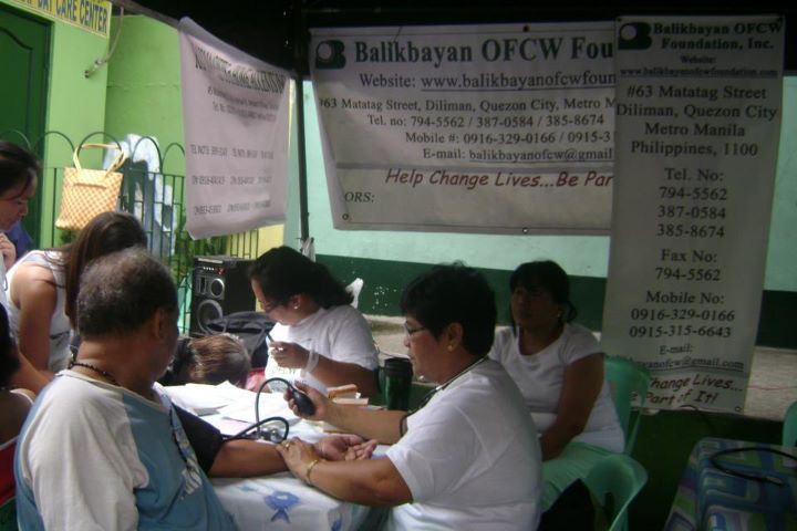 Balikbayan OfCW Foundation, Inc. aims to offer free medical assistance to our primary beneficiaries, the Balikbayan, Overseas Filipino Contract workers and our fellow poor Filipinos. Our ultimate goal is to put up a Balikbayan Medical Center with the latest technology equipment, well-trained physicians, surgeons, nurses, medical technologists, physical therapist, and staff who are ready to attend to medical needs and complicated health problems being experienced today.